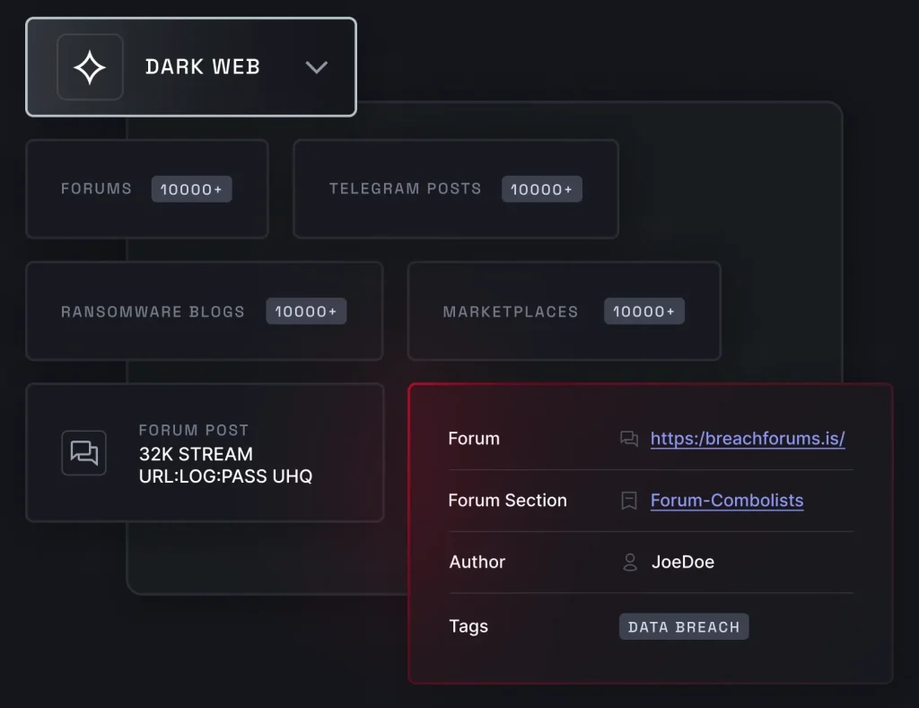 • Brand & Domain Mentions: Is someone planning a phishing campaign using your logo? Are they discussing a DDoS attack on your infrastructure? The chatter matters.